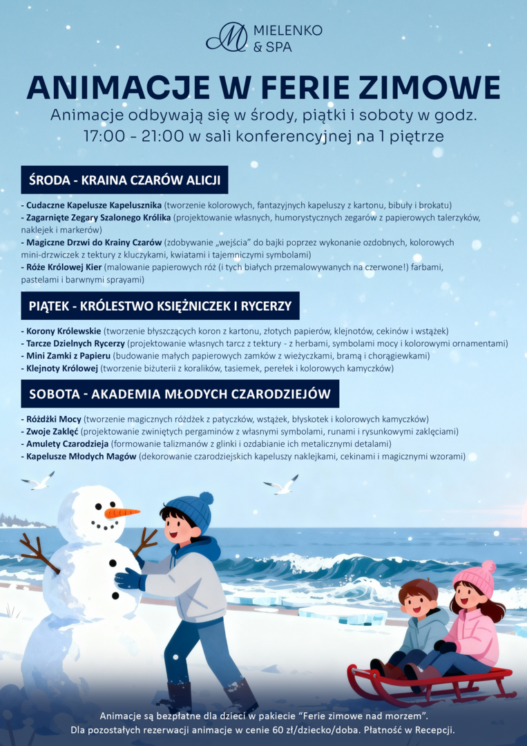 - program animacji dla dzieci (start od 21.01.2026 w wybrane dni zgodnie z harmonogramem - SPRAWDŹ PROGRAM)